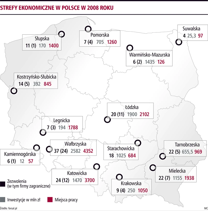 W przypadku strefy wałbrzyskiej, zmiany dotyczą istniejących już podstref, a także utworzenia nowych podstref na terenach gmin: Prudnik, Twardogóra, Jarocin i Góra oraz miast: Oleśnica iáKalisz. Szacuje się, że na terenach włączonych powstanie 4,850 tys. miejsc pracy, a inwestycje wyniosą ok. 1469 mln zł. Ponadto, dzięki inwestycjom lokowanym w strefie, poza nią może powstać ok. 970 miejsc pracy. Rozporządzenie ma obowiązywać od 22 kwietnia 2009 r.