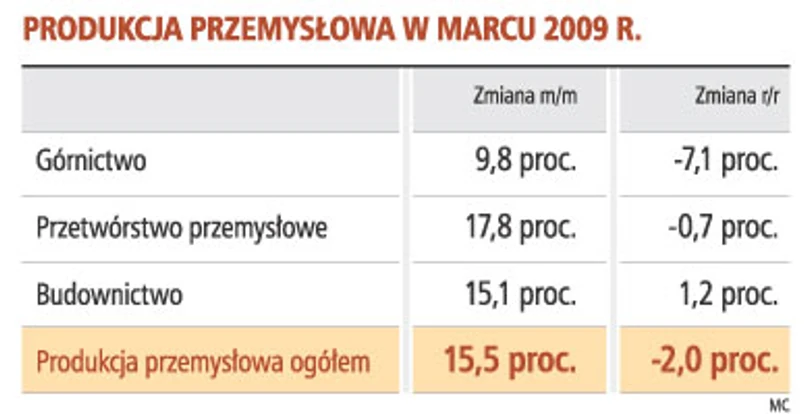 Ekonomiści są generalnie zaskoczeni tak dobrymi wynikami, jednak po wyeliminowaniu czynników sezonowych ten wzrost produkcji nie był już tak imponujący i wyniósł tylko 1,4 proc. Gorzej to zestawienie wygląda także, gdy popatrzymy na wyniki roczne. W stosunku do marca ubiegłego roku produkcja przemysłowa spadła o 2 proc., a po uwzględnieniu czynników o charakterze sezonowym ten spadek wyniósł 10,8 proc.