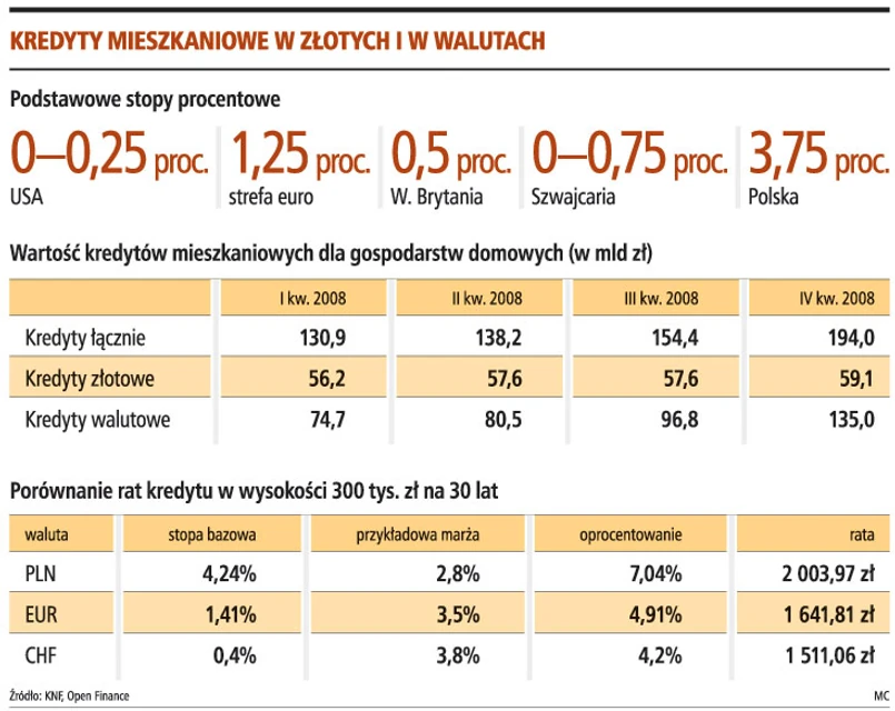 – Stopy procentowe w strefie euro zawsze były niższe niż u nas. Teraz trzymiesięczny WIBOR ma wartość 4,24 proc., podczas gdy taki sam LIBOR dla euro 1,42 proc. Gdybyśmy więc z dnia na dzień znaleźli się w strefie euro, to oprocentowanie kredytów w złotych spadłoby prawie o 3 pkt proc. – dodaje Mateusz Ostrowski.