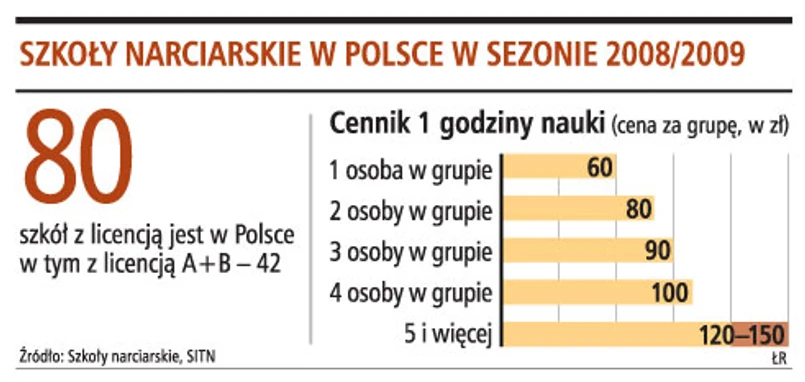 Cena godziny nauki jazdy to zwykle 60 zł, a jeden instruktor może uczyć więcej niż jedna osobę. Zysk więc jest duży. Zarobek szkoły narciarskiej waha się bowiem w przedziale między kilkoma tysiącami złotych (w przypadku najmniejszych szkół) do nawet kilkudziesięciu tysięcy złotych miesięcznie.