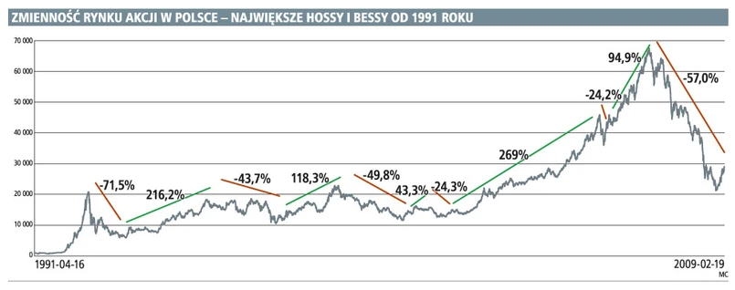 Taka metoda może pomóc inwestorom uniknąć wielu poważnych błędów – zwłaszcza kardynalnego: poddawania się emocjom i kupowania, gdy wszyscy kupują. Również nie jest jednak idealna. Cykle koniunkturalne nie zmieniają się z dokładnością szwajcarskiego zegarka. Zmiany cykli wywoływane były w historii wieloma różnymi czynnikami (wojny, szoki naftowe, bańki spekulacyjne), których wpływ i czas trwania trudno jest szacować. Tak samo jak trudno jest szacować, jak długo będzie trwało, jak będzie głębokie i kiedy skończy się obecne spowolnienie gospodarcze. Na poparcie tej tezy warto przywołać pojawiające się w prasie prognozy dynamiki PKB dla Polski w 2009 roku. Nie dość, że są one skrajne (od niewielkiego wzrostu po recesję), to jeszcze i rozpiętość szacunków jest znacząca – od +1,7 proc. do –1,7 proc.