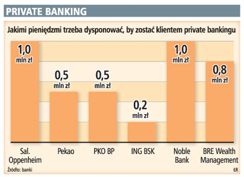 Private banking w ofercie mają niemal wszystkie banki detaliczne w kraju. Na rynku są też instytucje specjalizujące się tylko w obsłudze najzamożniejszych klientów. Pierwszym, który wprowadził ten model biznesu, był Nobel Bank. Przez przedstawicielstwa działają u nas także m.in. szwajcarski UBS i niemiecki Sal. Oppenheim.
