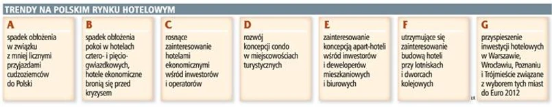 Utrzymanie wzrostu na rynku hotelowym, mimo panującego kryzysu, będzie możliwe, gdyż coraz więcej deweloperów działających na rynku mieszkaniowym czy biurowym rozpatruje możliwość zmiany przeznaczenia swojej inwestycji na hotelową. Szacuje się, że obecnie może to dotyczyć przynajmniej 10 proc. przedsięwzięć.