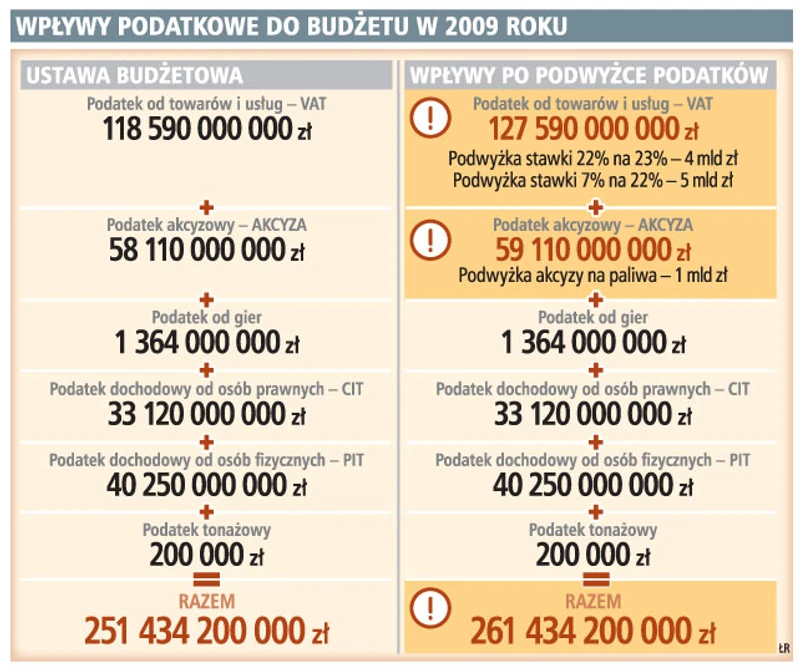 269,4 mld zł mają wynieść dochody podatkowe i niepodatkowe w 2009 roku
