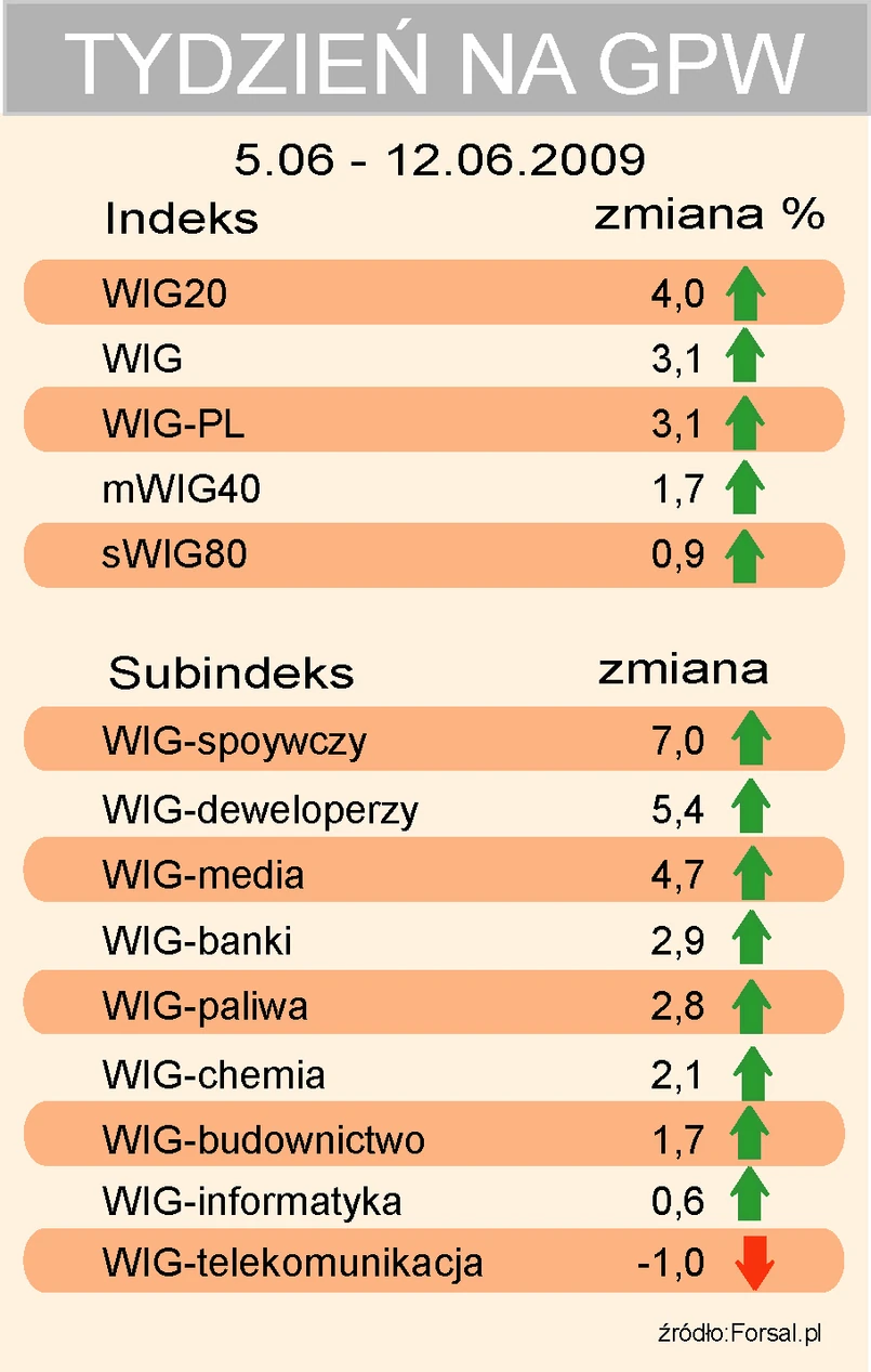 Dobrą passę kontynuowali w bieżącym tygodniu także deweloperzy, których subindeks zyskał w mijającym tygodniu 5,4 proc.