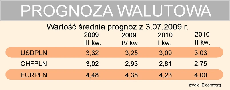 Natomiast Deutsche Bank prognozuje w III kwartale 2009 r. mocne osłabienie złotego nawet do 4,7 zł za euro, a w IV kwartale nawet do 4,75 zł za euro.