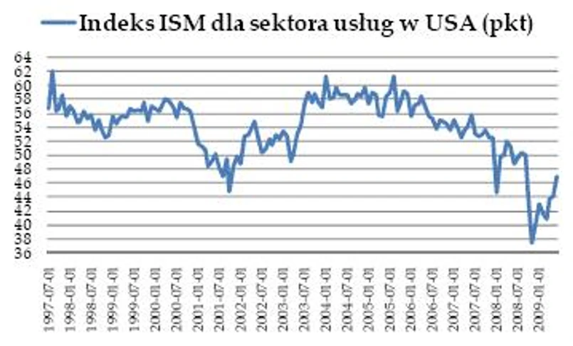 W czerwcu indeks ISM dla amerykańskiego sektora usług wyszedł ponad minimum ustanowione w czasie poprzedniej recesji, z I połowy obecnej dekady. To bez wątpienia korzystny sygnał. Jednocześnie w dalszym ciągu wskazuje na spowolnienie w tej części gospodarki, co nie może być dobrze przyjmowane. Czerwcowy wynik znajdował się do tego nadal w najgorszym decylu (dzieli zbiór na 10 równych części) historycznych danych o wskaźniku ISM dla sektora usług. To potwierdza słabość tej sfery gospodarki, która ma kluczowe znaczenie w Ameryce.