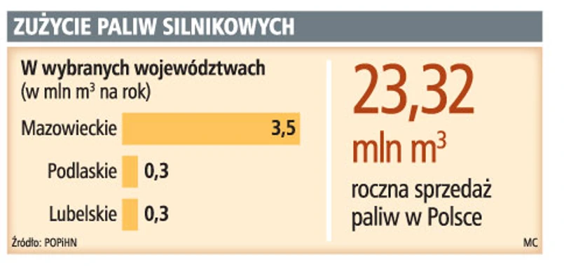 – Korzystamy już z rurociągu z Płocka do naszej bazy w Mościskach koło Warszawy – dziwi się Dawid Piekarz, rzecznik Orlenu. Część ekspertów uważa jednak, że zużycie diesla w stolicy rośnie tak szybko, że obecna magistrala może okazać się w przyszłości niewystarczająca. Na Mazowszu sprzedaje się 15 proc. paliw zużywanych w Polsce. Zdaniem Roberta Soszyńskiego popyt jest tak duży, że projekt ten byłby dla PERN opłacalny. – Poza tym produkty w ten sposób można byłoby wysyłać nie tylko do stolicy, ale również dalej na wschód – przekonuje.