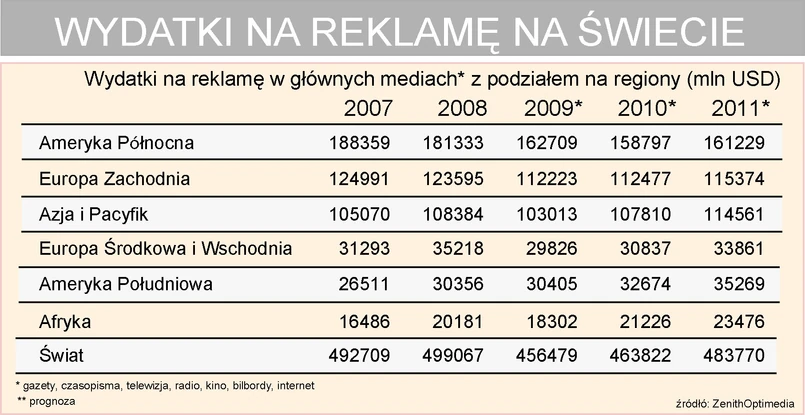 Liderami odbicia, jeśli chodzi o wydatki na reklamę, będą kraje rozwijające się, takie jak Brazylia, Rosja, Indonezja, Indie i Chiny.