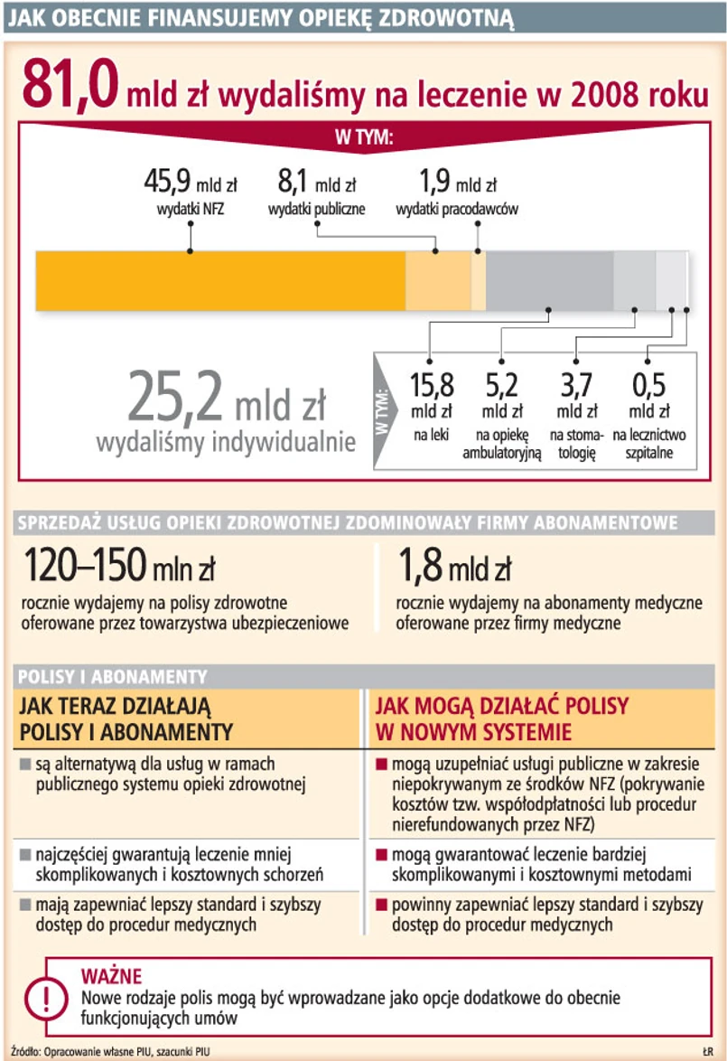 Z informacji GP wynika tymczasem, że nie należy liczyć nawet na taką zmianę – pierwsze rozporządzenia w tej sprawie, które mają pojawić się w sierpniu, nie wprowadzą żadnych istotnych zmian w dostępie do usług medycznych w ramach systemu publicznego. W tej sytuacji dodatkowe polisy nie pojawią się.