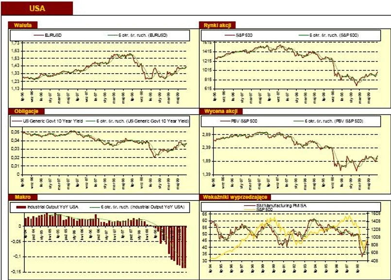 Ubiegły tydzień stał pod znakiem znacznego umacniania się złotego i cen akcji, wzrosty kontynuowały również ceny obligacji. W przypadku złotego i indeksów akcyjnych wygenerowane zostały dosyć istotne sygnały kupna w dłuższym terminie. Indeksy polskich akcji wciąż pozostają na relatywnie niskim poziomie, w okolicach połowy fali spadkowej wywołanej upadkiem Lehman Brothers. Inne rynki wschodzące, których gospodarki stosunkowo dobrze radzą sobie w otoczeniu światowej recesji, odrobiły już cały ten dystans. W krótszym terminie, o czym już wspominałem powyżej, niepokoją jednak wysokie poziomy technicznego wykupienia oraz pojawienie się wyraźniejszych oznak zwiększonego optymizmu, które to sygnały mogą zwiastować przynajmniej kilkudniowe ochłodzenie. Ewentualne pojawienie się kilkusesyjnych spadków może jednak okazać się dobrą okazją do kupna akcji po korzystnych cenach.