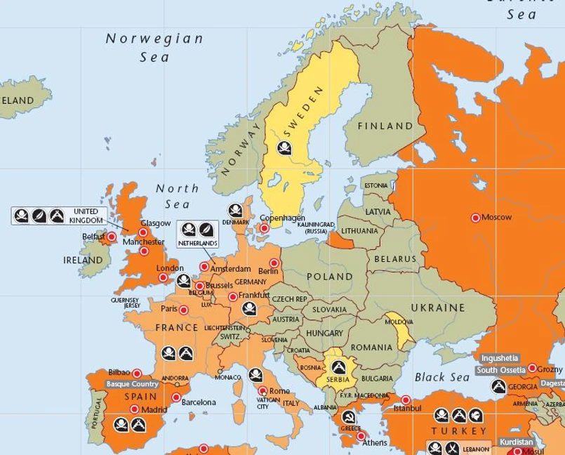 Aon zwraca uwagę na swojej stonie internetowej, że obecnie obserwuje się odradzanie niektórych – wydawałoby się – wygasłych ruchów terrorystycznych, jak „Świetlisty Szlak” w Peru. Dotyczy to także znacznie bliższych Polsce krajów, jak Grecja, gdzie do działania powróciły ugrupowania anarchistyczne.