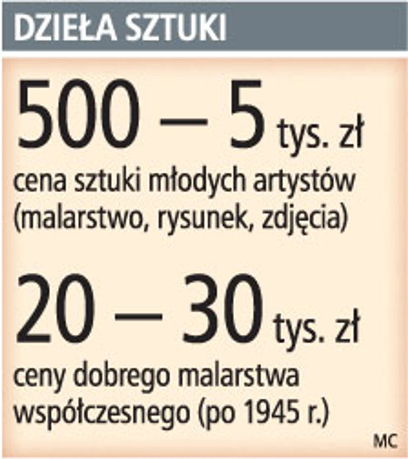 Godne polecenia inwestorom o niewielkim portfelu są dzieła (obrazy, rzeźby, grafiki, fotografie) najmłodszych twórców. Na aukcjach można je kupić w cenach od 500 zł do 5 tys. zł.