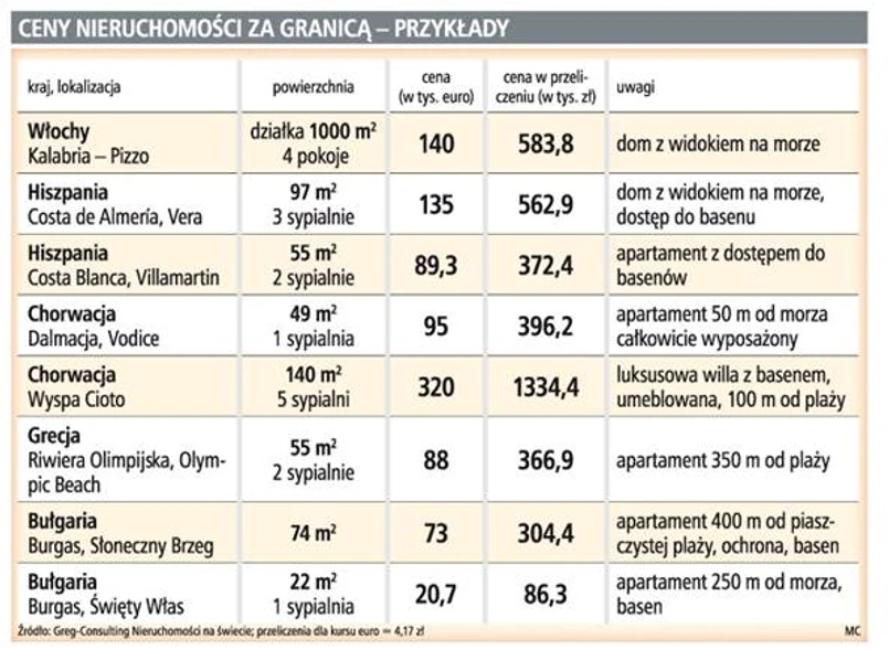 – Złoty na pewno w długim okresie będzie drożał. W ciągu trzech lat kurs euro spadnie do poziomu z ubiegłego roku, czyli do ok. 3,2 zł. To może istotnie zmniejszyć dochody właścicieli nieruchomości. Trzeba się z tym liczyć, kupując nieruchomości za granicą – prognozuje Marek Rogalski, analityk z Domu Maklerskiego Banku Ochrony Środowiska.