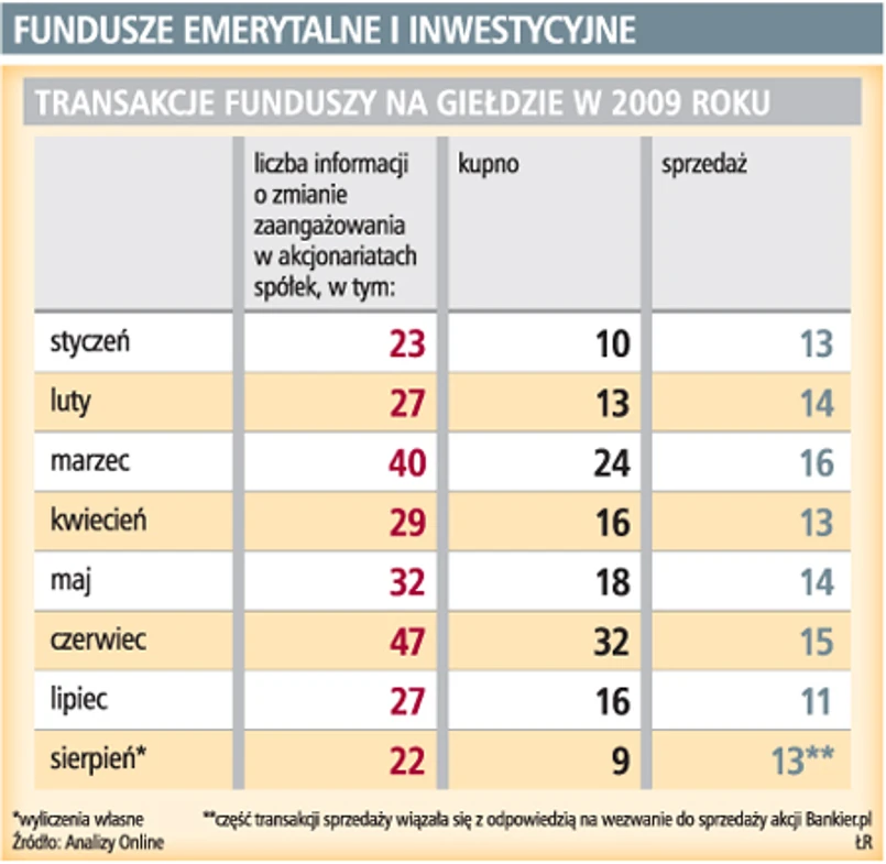 Tempo ewentualnych zmian w portfelach akcyjnych konkretnych funduszy inwestycyjnych i emerytalnych, poza płynnością akcji, będzie zależało też od procedury, jaką muszą przejść propozycje zmian zaangażowania w akcjonariatach wybranych spółek. Trudno jednak na bieżąco śledzić decyzje inwestycyjne zarządzających. Fundusze nie mają obowiązku podawania informacji o kupnie lub sprzedaży akcji, chyba że przekroczą wyznaczone ustawowo progi, między innymi 5 proc., 10 proc. czy 15 proc., albo zejdą poniżej tego poziomu. Wtedy muszą opublikować taką informację.