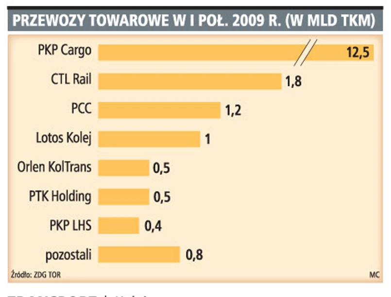 W I półroczu operatorzy prywatni przewieźli o 9,4 proc. towarów mniej niż w roku 2008, ale ich praca przewozowa wzrosła o 6,4 proc. i osiągnęła 31,4 proc. przewozów realizowanych w Polsce.