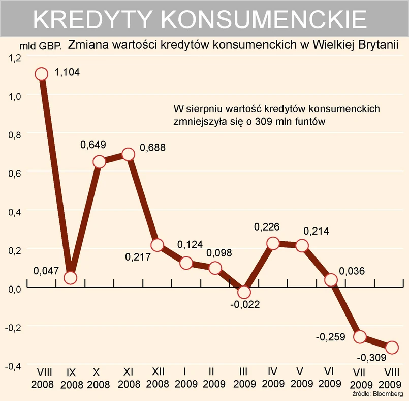 Choć dane o podaży pieniądza, czy zmianach wartości kredytów w poszczególnych segmentach rynku, nie przyciągają generalnie zbytniej uwagi, to w kontekście szans na znaczące przyspieszenie gospodarcze warto im się uważnie przyglądać. Dziś poznamy informacje z Wielkiej Brytanii, gdzie już w lipcu nastąpił spadek wartości kredytów konsumpcyjnych. To zjawisko nie widziane od dziesięcioleci. Nie tylko wskazuje na ograniczone możliwości konsumentów na wspieranie gospodarki, ale również na brak w tym względzie efektów działań banków centralnych i rządów tworzących warunki do większego zadłużania się.