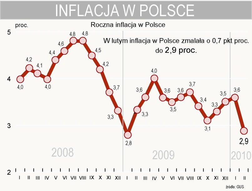 Dziesięciu uwzględnionych w ankiecie forsal.pl ekonomistów oczekiwało, że wskaźnik CPI wyniósł w lutym 3,0 proc. rok do roku. Prognozy oscylowały w przedziale od 2,8 proc. do 3,1 proc.. Na takim samym poziomie lutowy poziom wskaźnika szacował resort finansów.