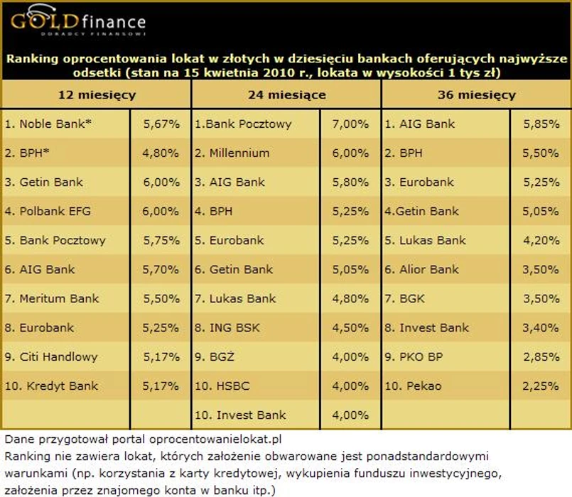 Z nowości warto odnotować pojawienie się w naszym zestawieniu banku BPH i to od razu na dość wysokich pozycjach w poszczególnych kategoriach lokat. Zaoferował on trzy rodzaje lokat „antypodatkowych” na okres od 3 do 12 miesięcy i dwie dość wysoko oprocentowane lokaty zwykłe na 24 i 36 miesięcy.