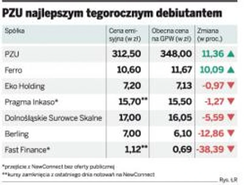 Tymczasem spółki, których oferty zbiegły się z niedawną sprzedażą papierów PZU, nie wyszły na tym najlepiej. Na dodatek trafiły na pogorszenie sytuacji na giełdzie.