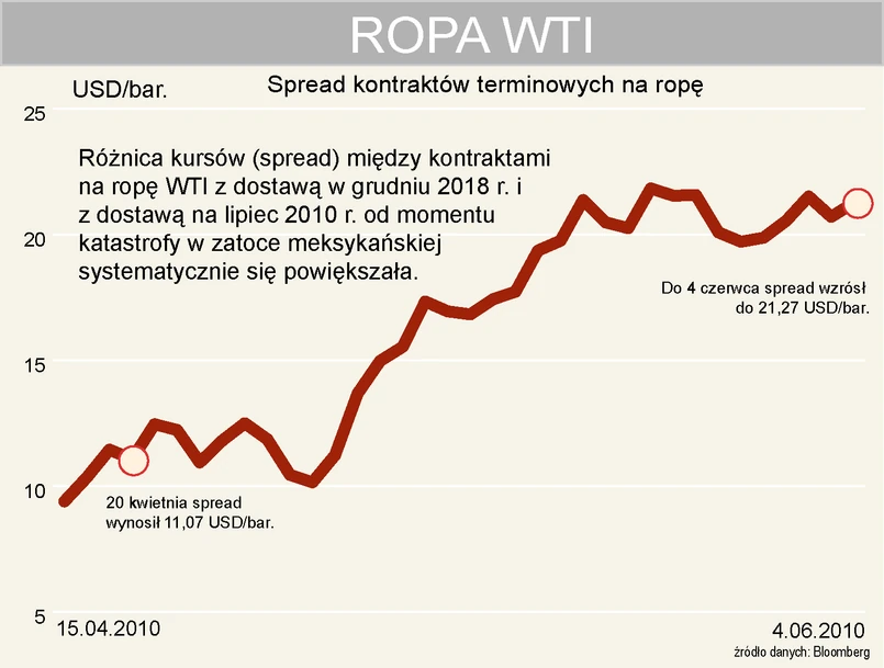 Prognozowany przez rynek wzrost cen ropy jest pośrednim efektem katastrofy platformy wiertniczej Deepwater Horizon. Wybuch na platformie, który wywołał jedną z największych katastrof ekologicznych w historii, skłonił prezydenta USA Baracka Obamę do podjęcia decyzji o wstrzymaniu wydawania pozwoleń na nowe odwierty w poszukiwaniu ropy naftowej.