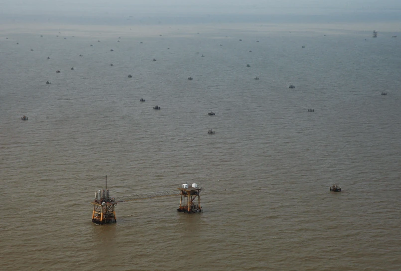 Katastrofa w Zatoce Meksykańskiej: Grand Isle, Louisiana, USA. Niedaleko Grand Isle statek rybacki zbiera ropę z powierzchni wody. Wcześniej miejscowi rybacy łowili krewetki, teraz zbierają ropę. Foto: Derick E. Hingle/Bloomberg / Bloomberg