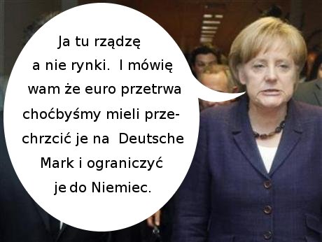 Podejrzewamy że wcześniej czy później ktoś się jednak opamięta i zda sobie sprawę z tego iż koniec strefy euro w obecnym kształcie jest przesądzony. Że straty są zbyt wielkie a koszt utrzymania fikcji przewyższa korzyści. Niemcy wyciągną wówczas wtyczkę z kontaktu przerywając bezsensowny upust krwi i wyjdą z listkiem figowym sugestii usunięcia paru PIIGS ze strefy euro. A ponieważ dobrowolny czy przymusowy exodus chwiejnego finansowo kraju z euro z wielu względów wydaje się nierealny i jest organizacyjnie prawie niewykonalny za bardziej prawdopodobne uznać należy perspektywę opuszczenia strefy euro przez same Niemcy.