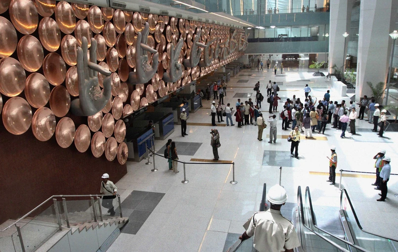 Nowy budynek portu lotniczego w New Delhi został zaprojektowany przez londyńskie biuro architektoniczne HOK International. Pod względem wielkości jest porównywalny z lotniskami w Dubaju, Hongkongu i Singapurze.
