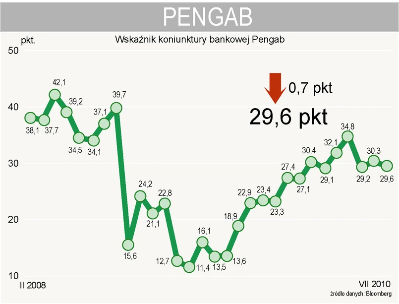 Wskaźnik ogólnego klimatu koniunktury (WOKKB) spadł w lipcu o 1,5 pkt, do 39,8 pkt.