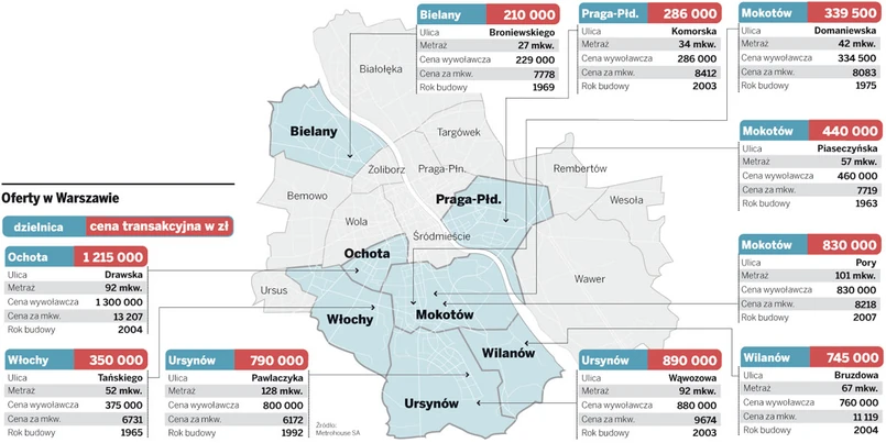 Przykładowe ceny mieszkań w Warszawie w okresie 30 sierpnia - 6 września 2010.