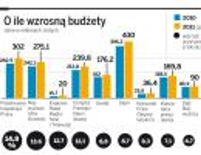 Niewiele mniejszy wzrost wydatków zakładają trzy inne instytucje. Najwyższa Izba Kontroli chce budżetu wyższego o 13 procent, Krajowa Rada Radiofonii i Telewizji oraz IPN – 12 procent. Wszystkie wzrost wydatków tłumaczą identycznie – że w poprzednich latach kilkakrotnie i w bardzo restrykcyjny sposób zmniejszano im budżety, co doprowadziło do zaniechania ważnych inwestycji.