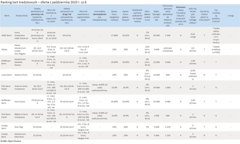 W zestawieniu, które uwzględnia ofertę 25 banków ocenie poddano najważniejsze parametry, które mają wpływ na atrakcyjność plastiku z punktu widzenia klienta.