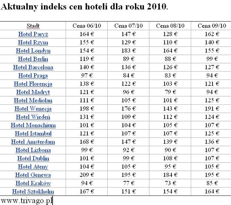 - Stolice państw położonych na wschodzie również wykazały niższe ceny niż rok temu. Do nich należą np. Bukareszt (77 Euro, 21 proc. mniej) Sofia (76 Euro, 22 proc. mniej) – informuje Pamela Kayser.
