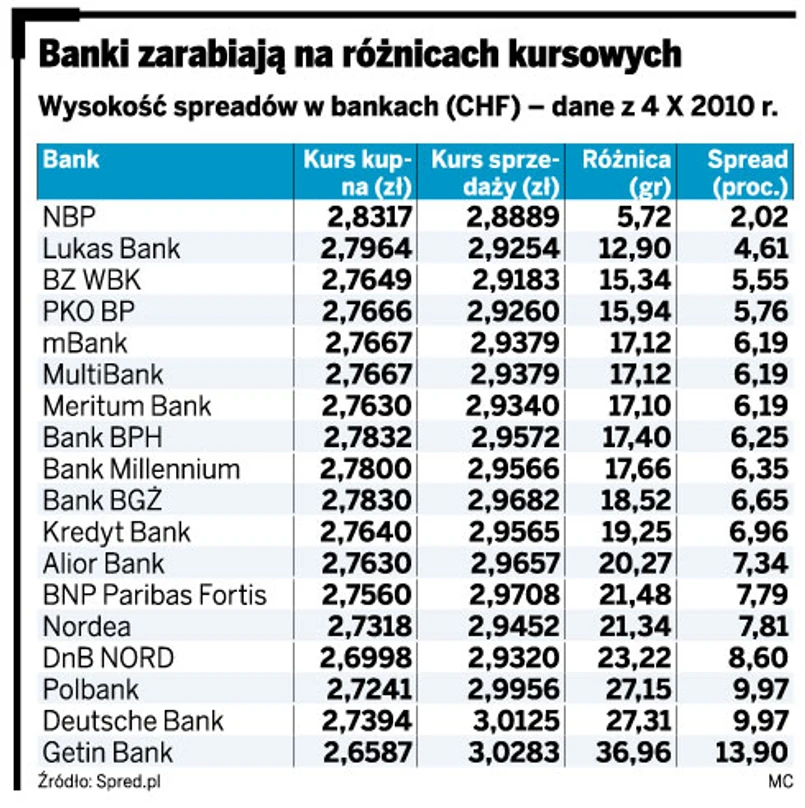 Bardziej prawdopodobne jest jednak inne rozwiązanie. – Banki zaczęłyby kompensować sobie spadek przychodów ze spreadów, podnosząc inne opłaty – mówi Jakub Borowski, główny ekonomista Invest-Banku. Być może wzrosłyby wówczas marże kredytowe, prowizje czy nawet opłaty za prowadzenie rachunków bankowych.