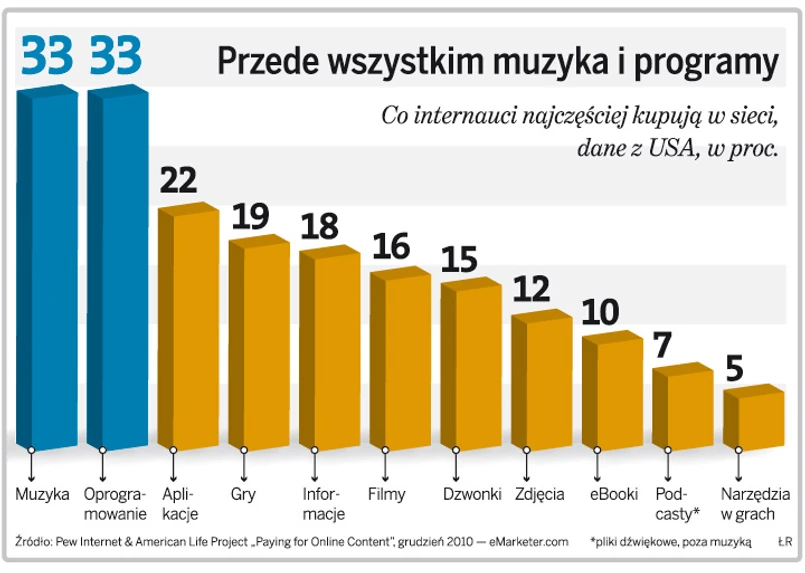 Najwięcej powodów do zadowolenia mogą mieć branża muzyczna i producenci oprogramowania (za ich ofertę płaci po 33 proc. internautów), twórcy aplikacji na komórki i tablety (22 proc.), twórcy gier (19 proc.), a także wydawcy prasy. Do płacenia za newsy przyznaje się 18 proc. internautów.