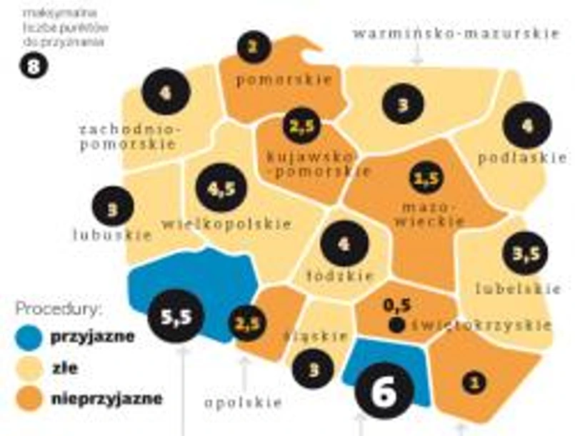 Organizacja zbadała także wymogi, które musi wypełnić każdy starający się o dotacje przedsiębiorca. Według oceny ekspertów poza czterema regionami reszta mnoży restrykcyjne wymogi ponad potrzebę i zdrowy rozsądek.