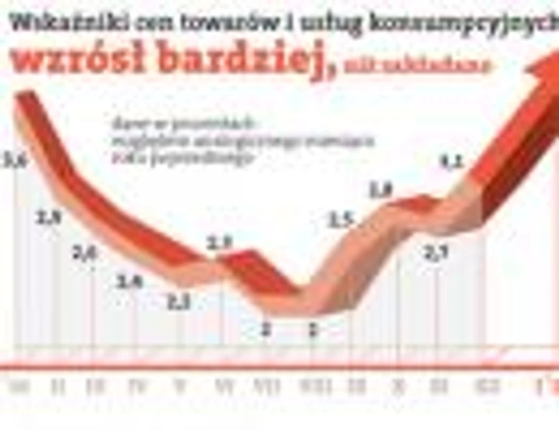 O wzrostowej tendencji inflacji ekonomiści mówią od kilku miesięcy, ale ich prognoza na styczeń zatrzymywała się na 3,4 proc. Styczniowe dane GUS nieprzyjemnie zaskoczyły. Wzrost inflacji w stosunku do ub.r. – 3,8 proc., wzrost cen żywności – 4,8 proc. W efekcie RPP może się zdecydować na serię podwyżek stóp procentowych.