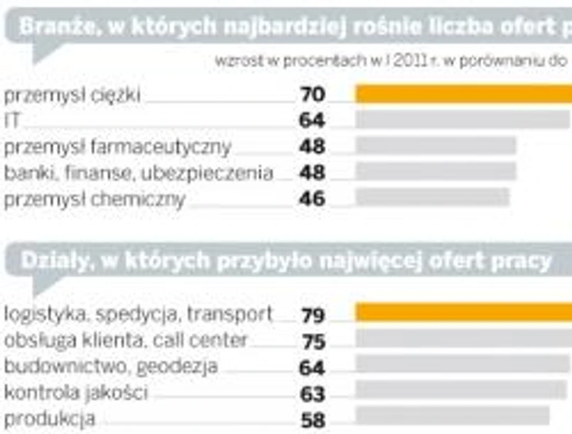 Najbardziej rozchwytywani są programiści i inżynierowie specjalizujący się w usprawnianiu procesów produkcyjnych oraz biotechnologii. Liczba ofert pracy dla nich wzrosła nawet o 100 proc. W marcu analitycy spodziewają się podobnego wzrostu w budownictwie. – W niektórych profesjach zaczyna się rynek pracownika – twierdzi Przemysław Gacek z Pracuj.pl.
