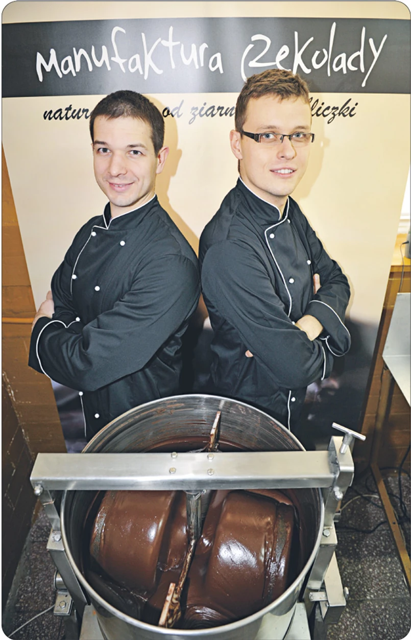 To prawdziwie filmowa historia, doskonały materiał na kinowy hit, który mógłby wywołać ferment w świecie białych kołnierzyków: dwaj pracownicy międzynarodowych korporacji, przyjaciele z licealnej ławki, rzucają atrakcyjne posady, by otworzyć Manufakturę Czekolady. Ręczna robota, surowce z ekologicznych plantacji, żadnych spulchniaczy, lecytyny, aromatów, bez grama tłuszczu, bo spłyciłby smak. Spod ich rąk wychodzi już sześć rodzajów gorzkich tabliczek z zaskakującymi dodatkami (od chili po morską sól), a zdjęcia bohaterów – pozujących niczym partnerzy światowych funduszy inwestycyjnych lub renomowanych kancelarii – wyzierają z opakowania każdej tabliczki. Smakołyki zdobywają nagrody na targach, a Tomasz Sienkiewicz i Krzysztof Stypułkowski – właściciele czekoladowej fabryczki spod Mińska Mazowieckiego – kolejnych klientów.