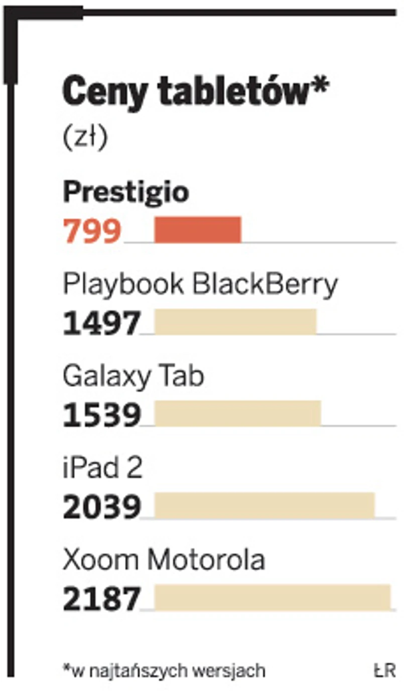 – Cena jest jedną z barier rozwoju tego rynku. Ale nasza oferta jest bardzo konkurencyjna – uważa Harasim. Liczy, że tablety Prestigio staną się w tym roku prezentem komunijnym oraz że po wakacjach rodzice będą wyposażać w nie dzieci idące do szkoły. W każdym kupionym Prestigio za darmo wgrane będzie ponad 2 tys. książek, w tym wszystkie lektury szkolne.