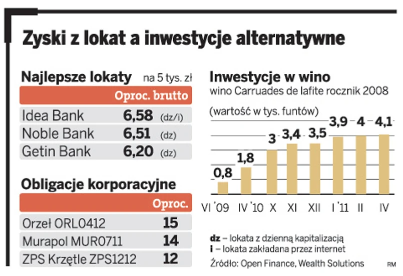 Jednak lokując pieniądze na rok, trzeba wziąć pod uwagę, że część zysku zje inflacja. Zgodnie z prognozą rządową w tym roku ma wynieść 3,5 proc., a ekonomiści szacują ją na 4 proc. Wysoka inflacja powoduje, że warto poszukać inwestycji, które przyniosą wyższy zwrot. W ostatnich latach hitem było lokowanie kapitału w wino. – Inwestuje się w skrzynki, czyli dwanaście butelek specjalnie wyselekcjonowanego wina z regionu Bordeaux we Francji. Wzrost wartości win z tego regionu wynika z ograniczonej produkcji – tłumaczy Maciej Kossowski, prezes Wealth Solutions.