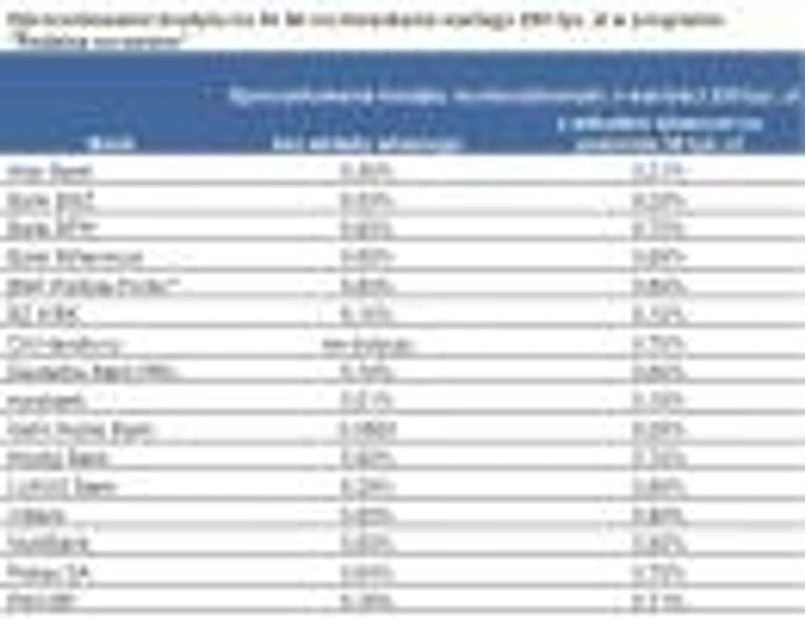 Podobnie sytuacja wygląda w przypadku wkładu własnego. Przy zwykłym kredycie warto ów posiadać, ponieważ oprocentowanie kredytu hipotecznego jest wyższe niż odsetki jakie można uzyskać z lokaty. Jednak w przypadku kredytu w programie „Rodzina na swoim” sytuacja wygląda odwrotnie. W związku z tym, że blisko połowa odsetek jest regulowana przez państwo, bardziej opłaca się wkład własny utrzymywać na lokacie. Skąd to wynika? Relatywnie mało banków premiuje wniesienie tych kwot poprzez obniżkę marży. W przypadku kredytu na 30 lat na mieszkanie warte 250 tys. zł mediana oprocentowania wynosi 5,89% w przypadku kredytu bez wkładu własnego i 5,71% dla kredytu z 25-procentowym wkładem. Przeciętna marża jest więc o zaledwie 0,18 pp. niższa.