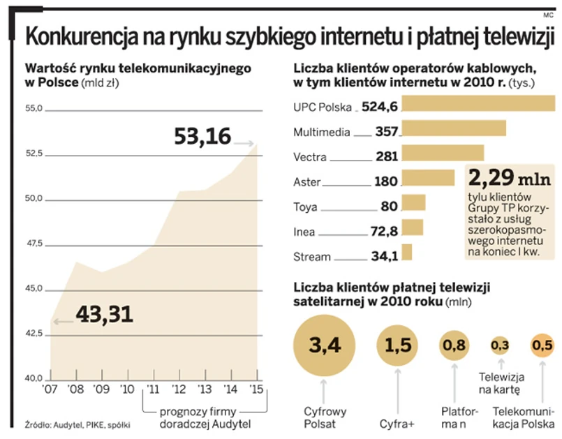 Wprowadzając ofertę szybkich prędkości, TP szuka sposobów na walkę o rynek z coraz bardziej agresywnymi konkurentami, na czele z UPC Polska, które może za chwilę zwiększyć swój udział w rynku po przejęciu Aster, ale także z Multimediami Polska, Vectrą i mniejszymi kablówkami.