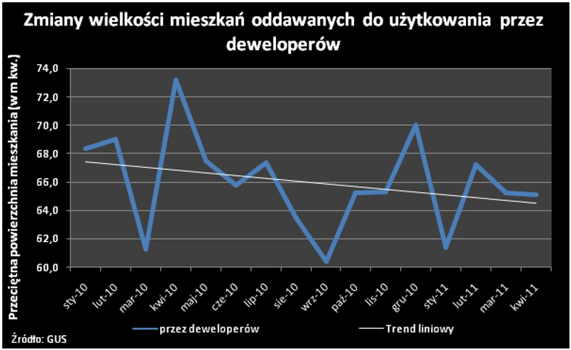 Zgodnie z najświeższymi danymi GUS w ciągu ostatnich 12 miesięcy zostało w Polsce oddanych do użytkowania blisko 128 tys. mieszkań. Ich średni metraż wyniósł przeszło 109 m kw. Największe lokale i domy budowali inwestorzy indywidualni. Przeciętnie miały one blisko 145 m kw. W przypadku deweloperów metraż ten był znacznie mniejszy i wynosił 65,4 m kw. Spółdzielnie natomiast budowały lokale o 5,8 m kw. mniejsze.