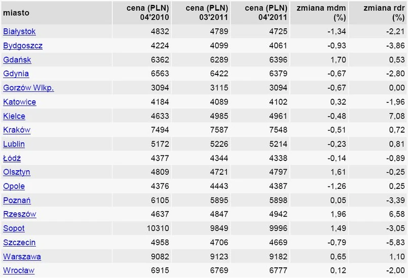 „W kolejnych miesiącach można się jednak spodziewać spadku średnich cen ofertowych. Wpływ na to będzie mieć ograniczenie popytu wywołane nakładaniem się kilku istotnych czynników: niepewność na rynkach finansowych przekładająca się na większe ryzyko zaciągania kredytów walutowych, rozpoczynający się wakacyjny okres urlopowy a także rosnąca podaż ofert na konkurencyjnym rynku pierwotnym. Statystyki GUS wykazują bowiem, że od stycznia do kwietnia br. deweloperzy oddali do użytku prawie 12 tys. nowych mieszkań. Ponadto w pierwszym kwartale tego roku wydanych zostało o 10% więcej pozwoleń na budowę niż w analogicznym okresie roku 2010. Przy obecnych cenach rynek nie zdoła wchłonąć takiej ilości mieszkań” – czytamy w raporcie Open Finance i oferty.net.