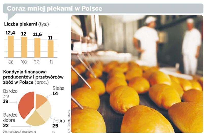 Jeszcze pięć lat temu w kraju działało około 14 tys. piekarni, podczas gdy pod koniec marca tego roku było ich już niespełna 11,5 tys. W sumie, jak szacuje Grzegorz Nowakowski, dyrektor Instytutu Polskie Pieczywo, do końca roku z rynku zniknie kolejne 400 firm.