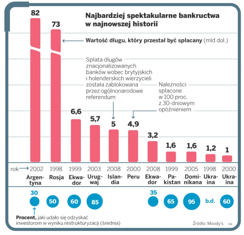 Scenariusz ekwadorski trudno jednak wyobrazić sobie w przypadku większej gospodarki. Rynki są bowiem bardzo pamiętliwe i nie zdarza się, by puszczały niezapłacony dług w zupełną niepamięć. Przekonały się o tym nawet władze ZSRR. W 1986 r. atomowe supermocarstwo, przed którym drżała połowa świata, musiało wykupić (po mocno obniżonej stawce) obligacje carskiej Rosji, których spłacania odmówił Lenin po zwycięskiej rewolucji bolszewickiej 1917 r. Dopiero wówczas Wielka Brytania (której banki straciły najwięcej) zgodziła się na to, by dopuścić do międzynarodowego obrotu pierwsze od siedmiu dekad międzynarodowe papiery dłużne radzieckiego rządu.