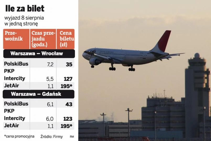 Jak wynika ze statystyk ruchu lotniczego, za komfort coraz więcej pasażerów jest gotowych zapłacić nawet dwa, trzy razy więcej niż za autobus czy pociąg. Zgodnie z filozofią przyjętą przez Jet Air bilet z Wrocławia do Warszawy czy z Gdańska do Warszawy będzie kosztował średnio w granicach 250 – 350 zł w jedną stronę. W podobnej cenie bilety chce oferować również Eurolot. Pierwsze bezpośrednie rejsy Eurolotu z Gdańska do Krakowa oraz z Gdańska do Wrocławia wystartowały z początkiem lipca. Jacek Balcer zapewnia, że obłożenie na trasach jest fantastyczne. Dlatego na dwóch trasach nie kończą się ambicje spółki. Szefostwo firmy zapowiada kolejne połączenia.