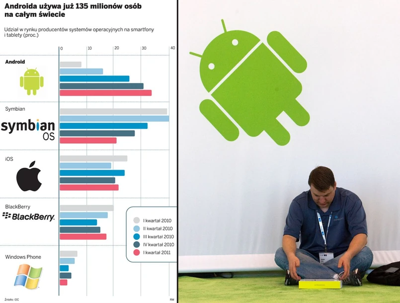 Stworzyć bezpłatny produkt, który zyska tak wielką popularność, aż stanie się rzeczą niezastąpioną dla setek milionów ludzi. Taki cel przyświecał przed czterema laty Andy'emu Rubinowi i szefom Google'a, kiedy wprowadzali na rynek Android – system operacyjny dla urządzeń przenośnych. Dziś jego użytkownikami jest co najmniej 135 mln ludzi, a każdego dnia w internecie loguje się 550 tys. nowych nabywców telefonu lub tabletu, którego mózgiem jest Android.