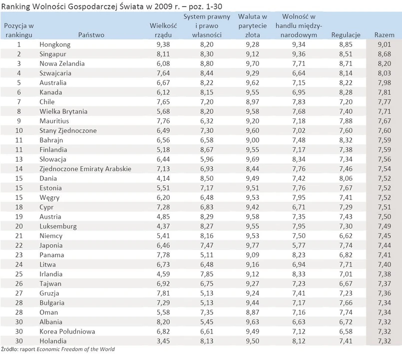 W ubiegłorocznym rankingu Polska była 65. (6,90 pkt), dwa i trzy lata temu - 74. (6,86 pkt i 6,81 pkt).